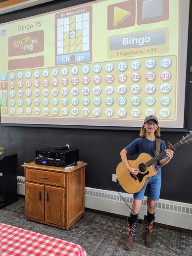 Herlof was happy to kick off a Bingo Night fundraiser for the local skilled nursing facility. Donations were collected to provide specialty services for the residents. Herlof was able to contribute with a gift of music - and that's a good bingo! 8/2025