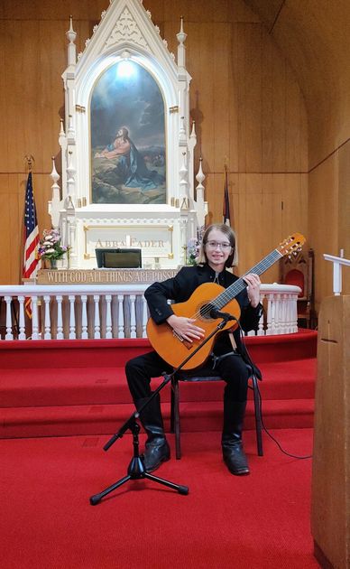 Herlof recently put a lot of work into learning a new hymn during guitar lessons. It is sweet arrangement of "Beautiful Savior" and it was worth every minute of practice. He was eager to share the piece for two of his family church congregations. And a fun note - they both happen to be named St. John Lutheran Church! 10/2023